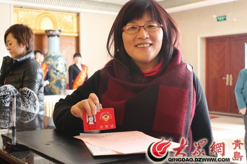政协委员姜志荣领到了出席证。