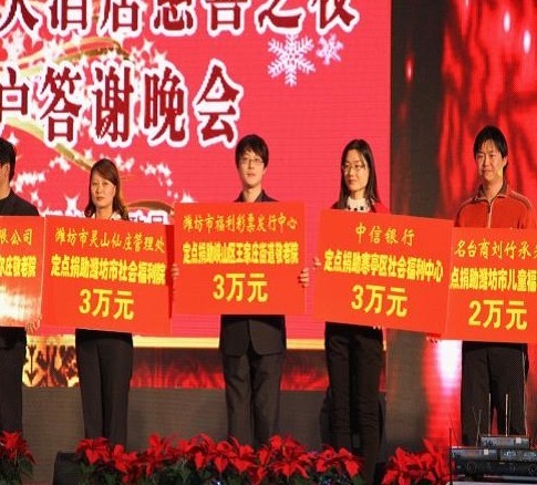 时隔一周,12月8日晚,由潍坊市慈善总会、潍坊市民政局和富华大酒店联合主办的慈善之夜大型募捐活动中,包括潍坊市福利彩票发行中心在内的16家爱心企业和企业家代表上台举牌,对14家公益单位的31个项目进行定向捐助,其中市福彩中心向峡山区王家庄街道敬老院定向捐助3万元,用于为老人们购置冬日衣物等物品。