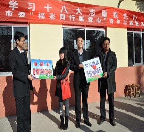 12月1日,在第27个“国际志愿者日”即将到来之际,市福利彩票发行中心志愿者开展爱心志愿者行动,向高密市密水街道拒城河小学的100余名留守儿童送上了书包等慰问品,送去了价值15000元的书包、课外书、棉衣及联通电话卡等爱心物品。