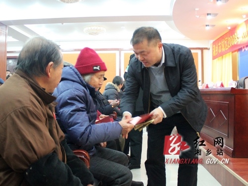 红网湘乡站1月24日讯(分站记者 胡胜)1月23日,湘乡举行城区2008年10月1日以前被征地农民养老金发放仪式,1112名城区老失地农民领到养老保险户折。至此,湘乡城区老失地农民实现了老有所养。主持湘乡市委全面工作的市委副书记、市长胡海军出席发放仪式并为失地农民代表发放了养老保险户折。
