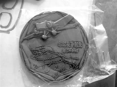 在纪念展上,有两本泛黄的书籍、一张繁体字的报纸和一枚特别的徽章引起了记者的注意。朱俊峰告诉记者,两本书分别是1945年的《时宪书》(俗称农历)和《国民四年国语课本》。《时宪书》的首页是《国民训》和《满洲帝国协和会》的介绍,他小时候每天都要背这篇《国民训》,那是日本人奴化中国人的训条,背得不好就会惨遭“协和嘴巴”,就是让两个学生互打对方耳光。而《国民四年国语课本》是解放后朱老学到的第一本课本,其中的第一课“可爱的中华”他至今都还可以熟练地背诵出来。说到那张泛黄的报纸,朱老说那是他在美国纽约买到的,2001年9月19日的《明报》,上面有首次曝光的九一八屠城照片。提到朱老收藏的一枚日军侵华纪念章,他告诉记者,那是日本为纪念1937年卢沟桥事变而制造的,日本给每一个参加这次侵略的日本兵都发“支那事变”纪念章,我特别收藏了一枚。纪念章的一面印着一名全副武装拿着刺刀的日本兵,脚下踩着惨死的中国军人在行进,另一面则印着一个飞机正在扔炸弹,下面是万里长城。纪念章上面还写着“支那事变纪念”“昭和十二年”的字样。朱老激动地说:“这纪念章就是日本侵华的铁证。”