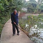 昨日下午,华西都市报记者在简阳市三岔镇见到了93岁高龄的汪林炳,他耳朵灵敏,谈吐清楚,是一位已有58年党龄的老党员,义务清扫三岔湖边一米多宽的休闲路,已经长达7年之久。