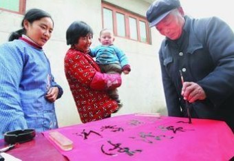 1月31日下午,记者带着红纸、墨汁来到张道宽老先生家。张老先生今年虽已是81岁高龄,但看起来依然神采奕奕。“这么多呀,赶紧现在就开始写吧,不然写不完了。”见记者手中一大摞红纸,张老先生热情地张罗着开始写春联。