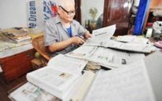 今年81岁的郭林老人原籍河北省青龙满族自治县,解放后调任承德地委行署武装部工作,直至退休。“我不抽烟不喝酒,麻将扑克下棋都不会,这辈子最大的爱好就是剪报。”郭林说。