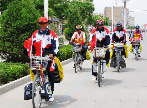 据车队领队童安君介绍,车队中年纪最大的是他自己,今年72岁,最小的59岁,平均年龄65岁。2001年成立的新疆维吾尔自治区老年体协骑游委员会目前有会员1500余人,大多是各单位的退休老人。他们以万里骑行的方式在全国各地宣传环保,感受美丽祖国,倡导低碳生活,同时也强健了自己的体魄。