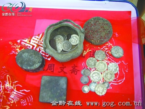 镇宁自治县县委宣传部的同志介绍说,这40件文物是江龙镇二村83岁的周元志老先生捐献出来的。