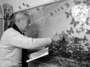 鞍山市和平街道体育社区的邵本甲是个老蝴蝶迷,今年84岁的他退休前是鞍钢的一名工会干部,一次参观蝴蝶展让他迷上了蝴蝶。