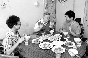 2012年6月,邵仲义老人资助的学生毕业前到他家吃饭通讯员吴奕摄
