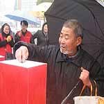 这几天气温骤降,寒意正浓,可是寒风丝毫没能阻挡住广大市民献爱心的脚步,一大早,市民郑先生就冒着严寒前来捐款,虽然外面很冷,但郑先生的笑容让人们心里暖意融融,郑先生说看到李成环龚大锬夫妇的感人事迹他深受感动,200元钱虽然也买不了太多东西,但也是自己的一份心意。说完,郑先生便匆匆离去,留给工作人员一抹暖阳般的笑容、一个质朴的背影。
