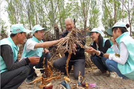 5月1日,宁夏义工联合会固原工作站5名义工来到彭阳县城阳乡长城村开展快乐雷锋工程关爱旱塬上的根雕艺术老人瓮金鼎公益活动。看到义工的到来,瓮金鼎老师非常开心,他带领义工参观他的几十件根雕作品。