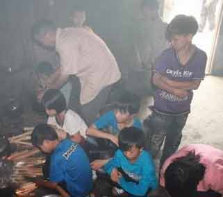 孩子们用的柴火都是从家里带来的,老人每次都会帮孩子们把木柴劈开,等他们放学回来便可马上生火做饭。每天11时许,10多个小土灶同时生火做饭,文均华的厨房很快被烟火熏黑了。为避免熏坏孩子的眼睛,文均华夫妇不仅定期对厨房进行大扫除,还在厨房开了多个洞口,以便排出烟雾。
