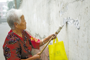 几年前,耿树荣得知和平区要争创卫生区的消息后,更坚定了清理小广告的决心,随后,她逐渐扩大清理的范围。清理小广告时间长了,她还总结出一套秘笈:粘得不太牢的当场撕下;粘得结实的,第二天就带上工具再清理。