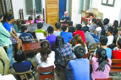 他没有教室,瓦棚、山坡、甚至院子里的枇杷树下都可以作为上课地点。他没有教材,劳作、亲近自然、尊重历史是他必讲的内容。20年来,慕名来这里上课、听讲的中小学生及大学生多达10万人次。