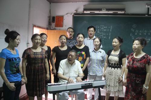 蒋忠孝老师的精神才好,七十多岁的人了,每天还不辞辛劳坚持给我们合唱队上音乐课,教我们声乐,教我们合唱,教我们拉二胡。”日前,合川夕阳爱乐合唱队队长赵善良告诉笔者,他是原重棉四厂退休职工,因为喜欢音乐,他与另外30余名来自其他单位的退休职工于2008年成立合川夕阳爱乐合唱队,蒋忠孝是合唱队的音乐指导老师,他们在蒋老师的义务指导下,不仅学到了不少专业音乐知识,而且深深体验到音乐的快乐与美丽。