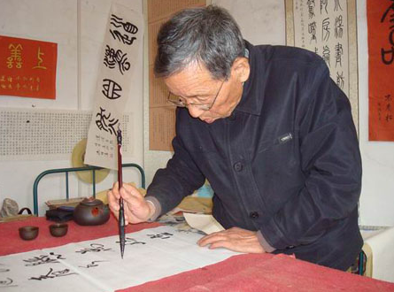 走进朱大爷家,记者立刻被他书香气十足的书画室所吸引。书画室由工作间和展厅组成,工作间内笔墨纸砚一应俱全,浓浓的墨香沁人心脾;足能容下20多人的展厅内书法作品、国画作品展放有序,一尘不染;展厅中间的乒乓球台,则是街坊四邻学习书画后娱乐休闲的“调味剂”。这一动一静的组合成为朱广明书画室的最大特色,也成了朱家人与村邻陶冶情操的“桃花源”。