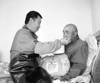 1997年,为了给孤寡老人提供一个安定的居住条件,当地政府筹集资金,建成了展旦召苏木敬老院。由于种种原因,一直没有找到合适的人来负责敬老院的工作。2000年,退休在家的老教师徐步青主动申请要为敬老院义务服务,这一干就是13年。徐步青告诉记者:“退休以后,国家给我退休金,生活上没有后顾之忧。虽然退休了,但是我想为社会做点贡献,不挣钱为这些老人服务。”