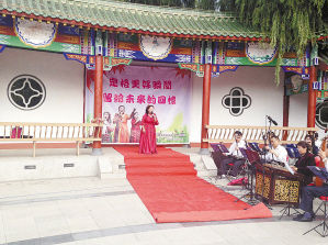 昨日12时30分,邱淑清老人的个人演唱在锦绣公园准备就绪,她把公园长亭的中间位置作为了舞台,后面有背景布,地上还铺有红地毯,而旁边有一支配备齐全的乐队,这一切看上去还真有点开演唱会的样子。