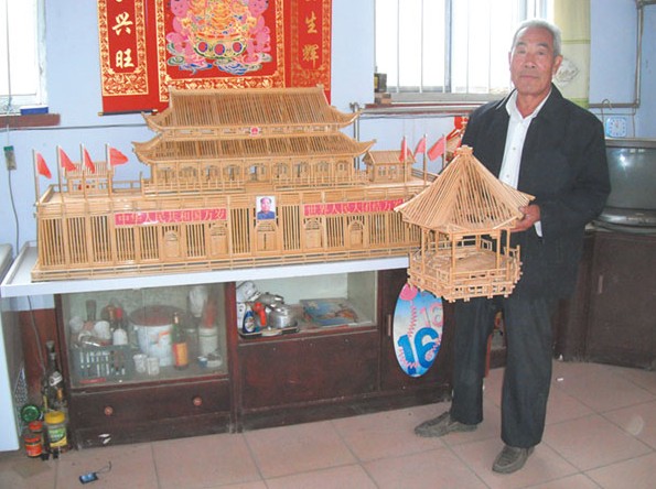 “八十年代和九十年代,我分别去过一次北京,见到了天安门。”他介绍说,自己从那时候开始就很喜欢天安门,熟悉了用秸秆做模型的方法之后,就想用秸秆做一个“天安门”,放在自己家里!
