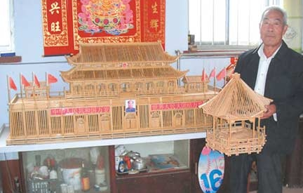 韩乃珍做秸秆实物模型“天安门”的事很快传开了,不少人来欣赏,他乐呵呵地欢迎。