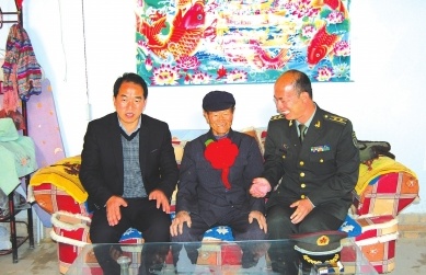今年10月15日,某部队的刘政委带着几个兵,敲锣打鼓地给他戴上了红花,送来了锦旗。下河清乡的书记、乡长也都聚在他家,小院里顿时热闹了起来。