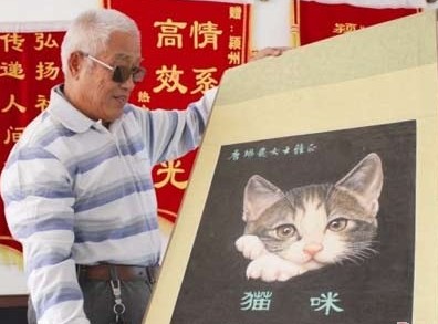 以画作《猫咪》为例,为了完成这幅作品,徐志明先后尝试数十次。猫咪毛多且细,如何呈现是个大问题。经过一次次尝试,徐志明决定用水笔勾勒,通过长短粗细线条的变换,最终让一只活灵活现的小猫跃然纸上,“县城不少人都向我要这幅画作,看着大家这么喜欢,我自己也感觉挺满足。”