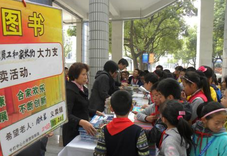 周火生老人在江苏千灯中心小学校举办了一场捐助大别山希望小学图书义卖活动,科普类的、侦探类、漫画类的……品种丰富的图书摆出来,一下子吸引了许多学生。