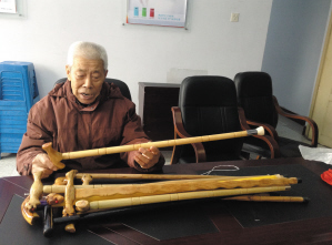 半年时间,耿泽高老人做了11根拐杖。20日,他抱着11根拐杖来到了社区,想让社区把拐杖送给社区里有需要的老人。