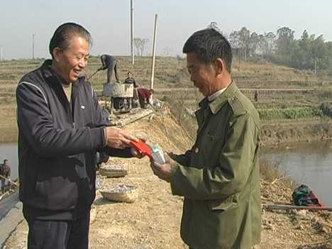11月25日,益阳市赫山区衡龙桥镇白石塘村骨干山塘――毛家塘扩建工地上一派繁忙。看着山塘在一尺尺挖深,白石塘村80岁的共产党员文德才露出了笑容。村民们告诉记者,这个可保证村里2000多亩农田灌溉的大工程,是文德才捐出自己一生积蓄50万元才得以开工的。