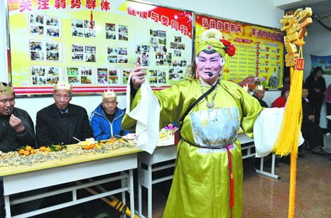 11月28日,在新疆昌吉市中心敬老院里,来自乌鲁木齐市爱心慈善团的爱心志愿者和艺术团成员,将一台精彩的豫剧表演送到了敬老院45名老人的跟前。