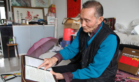 采访结束时,王远宽拿出吴永莲送给他的礼物——一本精装影集。在影集中,吴永莲的一篇文章“外公对我恩重如山”记录了王远宽对她的帮助、影响。特别是最后的两句诗令人动容:“己虽老却老人之老,幼人幼如同己之幼。持久奉献不思回报,厚德好学众人爱戴。” 图为12月2日,王远宽老人在翻阅吴永莲为他制作的影集。