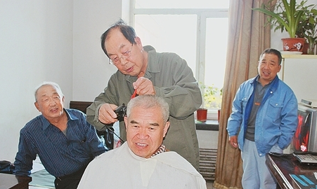 来不及捂捂手,忙准备刀、剪等用具,娴熟地为老人们理发。