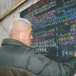 祝永智老人在写下个月的板报商洛讯商州区5位老人23年来接力办板报,基本上每月一期,很少间断。最初的发起人已经89岁了,还有一位因病去世,如今还有3位老人仍在坚持制作板报。