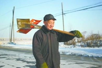 村民陪他扫雪