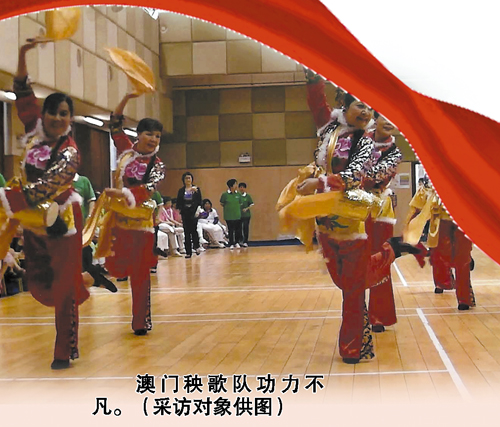 澳门秧歌队16人,平均年龄63岁,是所有队伍中最年长的。虽然一招一式不如广东队员那么专业、娴熟,但富有感染力,大家表现的意识很强,不时赢得观众热烈的掌声。