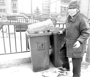 “年纪大了,呆在家里除了睡觉就是看电视,动不动就舞弄出毛病了。我也是一个闲不住的人,看着很多年轻人把什么东西都往垃圾箱里扔,有时候,有些空纸盒把垃圾箱的空间占满了,后面再来的人直接把垃圾往地上一扔。本来应该是物业天天来清理,可是凑不够一车物业又不拉,脏的要命。我呢,就过来拣一拣,把那些能卖钱的又占地方的纸板子、泡沫都拣出来,尽量给后面来的垃圾腾好地方,让垃圾入桶,我们的环境也能干净一点。”吴大妈一边从一个蓝色的大垃圾桶里翻拣着,一边对记者说,嘴里哈出的气在她的帽子边上凝结成了霜花。“兰州市一直争取卫生城市,我觉得最起码得先让垃圾分类,能循环利用的送到回收站,不能利用再集中处理,这样做首先垃圾的量就能减少很多。”别看老人家年事已高,环保意识可一点都不落伍。