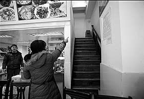 这个时候,坐在楼下望风的程老师已经警惕了,他看苗头不好,态度也恶劣了,就找了老板娘说:“你上去找一个戴眼镜的老太太(金老师),让他们下来点菜。”随后我就意思意思,说别激动,我先下去点菜。