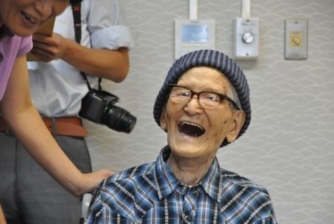 木村老人在去年12月获得吉尼斯记录认定,成为世界上最长寿的男性老人。老人的座右铭是“小饭量,长寿命”,不抽烟,控制饮酒。最近经常食用的是粥和用搅拌机磨碎的蔬菜。常年以来,注重鱼和蔬菜的均衡,每餐大概八分饱。