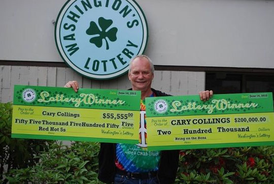 美国华盛顿61岁的老人凯利-科林斯度过了十分幸运的24小时,他首先在“红热5”这个彩种中击中55555美元(约合人民币34万),他是在一家食品店里买到的这张大奖彩票[微博]。第二天早上,他兴奋地来到华盛顿彩票公司领奖,完成后到一家披萨店吃午饭庆祝,就在等餐的时候,他又到隔壁买了一张彩票,结果中了20万美元(约合人民币122万)……