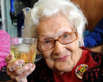 这位百岁奶奶在接受英国媒体采访时透露长寿秘诀:“我的秘密就是吃高质量食品。每天会吃大量的水果和蔬菜,适量饮点酒。”