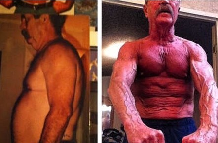 几年前,罗伯特还是一个拥有重约215磅(约196.7斤),每天吸60支香烟,并且走路需要拐杖的虚弱老人。但是,在即将当上爷爷开始含饴弄孙时,罗伯特却希望能够通过锻炼改变现在的亚健康状态。他开始按照严格的健身计划进行锻炼,每天早上先通过滑雪滑翔机进行1800次的腹部练习,然后继续在健身房锻炼 3个小时。六旬老汉狂健身网晒肌肉受追捧,在锻炼过程中,罗伯特一直精力充沛,势头十足,60天如一日的坚持让很多年轻人感到汗颜。