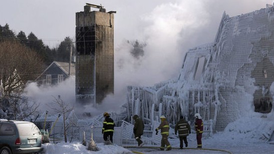 当地时间2014年1月23日,加拿大魁北克省,一处养老院发生火灾,警方确认至少3人死亡,30人失踪。据悉,养老院有公寓52套,住了50至60位老人。由于冬季风大,大火很快吞噬养老院建筑,当消防人员控制住火情时,建筑主体已经完全烧尽。图为消防员在火灾现场。