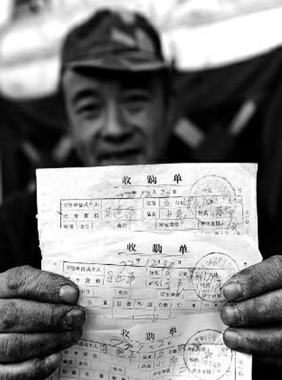很快庞志胜从塑料袋里挑出3张粮站收购单,上面均记录着习近平在上世纪70年代初期插队时的交粮情况。这3张粮站的收购单都是第一联的存根,上面盖有“延川县文安驿粮油购销站革命领导小组”的公章,“交售单位或个人”一栏中填的都是“习近平”、住址为“文(文安驿)公社梁家河大队”。3张粮站收购单上分别写着:1972年12月30日,习近平“交售”1包净重59斤的高良(粱),粮站收购金额为5.19元;1972年12月30日,习近平“交售”1包净重53斤的小麦,粮站收购金额为7.15元;1973年1月2日,习近平“交售”1包净重5斤的小麻,评定等级为二级,粮站收购金额为1元。