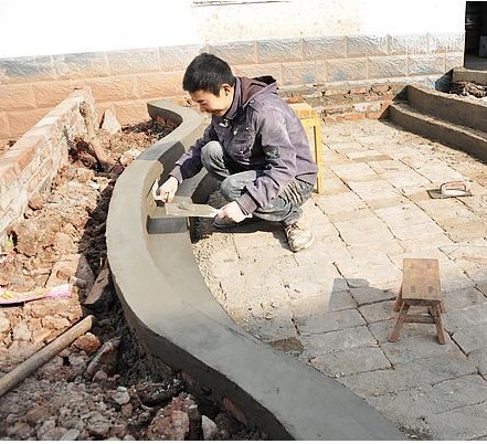 张力告诉记者,他是上个星期才从成都的建筑工地上回来过年的。“没想到隔壁的老邻居就盖上新房了,他们门口想建个小花园,这个我在行就帮他们设计了一个弧形的样式。”张力谦虚地说道。“张力这个小伙子一直都是个热心肠,什么事情都肯帮忙,修这个小花园都已经花了他三天时间了。”刚好路过的村民曾女士说道。
