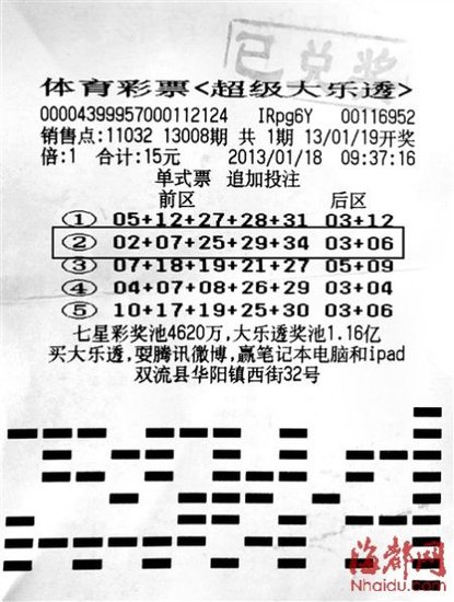 1月19日晚,体彩超级大乐透第13008期开奖,全国仅产生了1注一等奖,基本奖金1000万元,由四川双流彩民独揽了这份幸运,因为该彩民进行了追加,多拿到了600万元的追加奖金,总奖金高达1600万元。时隔9天,1月28日,在朋友的陪同下,这位巨奖得主来四川省体彩中心领取奖金。