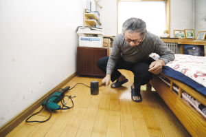 记者在王大爷家待了约半小时,期间并未听到噪音,王大爷说这是“赶巧了”。“没有噪音我能说有嘛……”说着,王大爷转身拿起一把锤子,一边比画一边说:“噪音大的时候,我没办法就砸地板,我也制造点噪音。”王大爷手上抡的是一把橡胶锤子,王大爷说,自己还用过铁锤子砸的方式来“回敬”楼下邻居,并且还特意买了个电钻,在卧室里钻了3个洞,专门用来制造噪声。而同在二楼的另一位住户表示,家里并不存在噪音扰民的问题,王大爷说因为楼下的培训班教室正对着自己的卧室,因此自己是惟一的“受害者”。