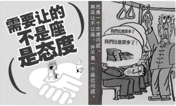 有网友评论到:公交车上的老幼病残弱专座原来是老幼病残弱之间互相让的,真替车上的那些人丢人。