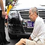 11月27日上午9点30分许,一辆用于婚庆的黑色比亚迪轿车开到翔安大道路段时,将一个横穿马路的70岁老人撞倒在地。当时肇事司机并没有停车,而是开着车直往浏五店方向逃跑。当时,一位好心司机也在这条大道上行驶,正好看到了这一情景,他立马开车跟在这辆肇事轿车的后面。当肇事车开到浏五店大转盘方向时,好心司机立马报警。