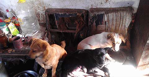 数只流浪狗被不明人士卖到饭店