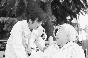 学生们来到福利院以后,分组进入老人的房间,送上水果送上节日祝福,开始为老人们剪指甲、读报,还积极和老人们聊自己和爷爷奶奶相处的乐事。
