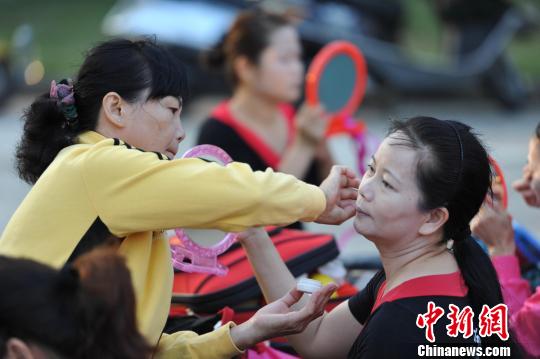 3月7日,演员正在化装准备参加三八节演出。 蒙钟德 摄